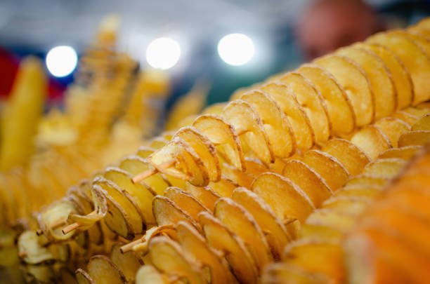 Crispy, golden spiral-cut potato fried to perfection, lightly seasoned with spices — fun to eat, delicious to taste!